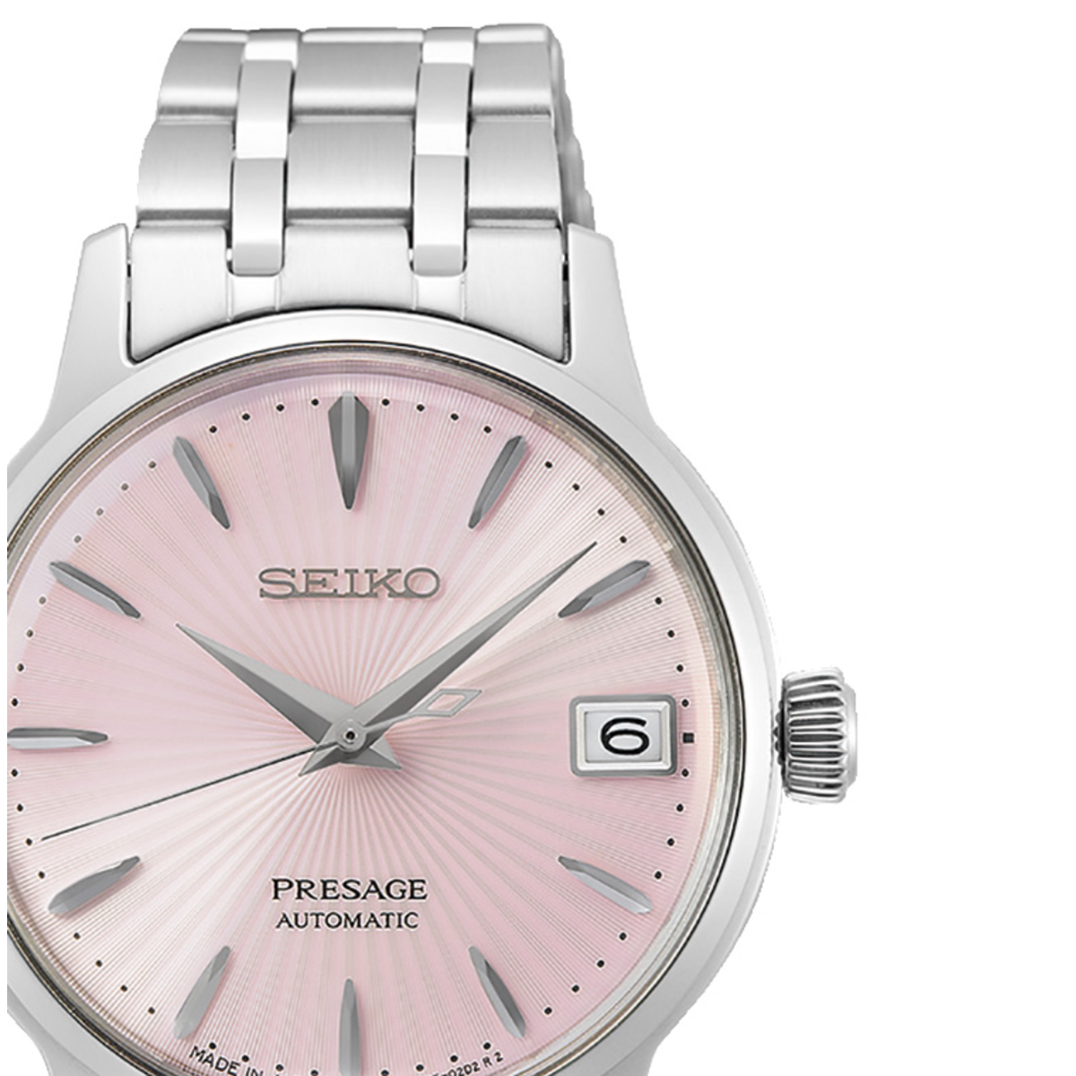 Cada reloj inspirado en un cóctel diferente y cada uno con su propio esquema de color. Se utilizan dos calibres diferentes; el 4R35 ofrece la delgadez y simplicidad de un diseño de tres agujas, mientras que el 4R57 ofrece además un indicador central de reserva de marcha. Su belleza resplandeciente se ve reforzada por siete capas de acabado brillante de la esfera y por la claridad de los cristales de forma de caja. Las manecillas son delicadamente curvadas por artesanos calificados para lograr un perfil más delgado de la caja."