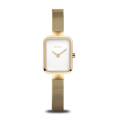 Un reloj que marca estilo: el BERING Classic 14520-334 fascina con su diseño rectangular minimalista y su presencia moderna y sofisticada. Su correa milanesa dorada, combinada con la caja angular de acero inoxidable, irradia una nobleza discreta.