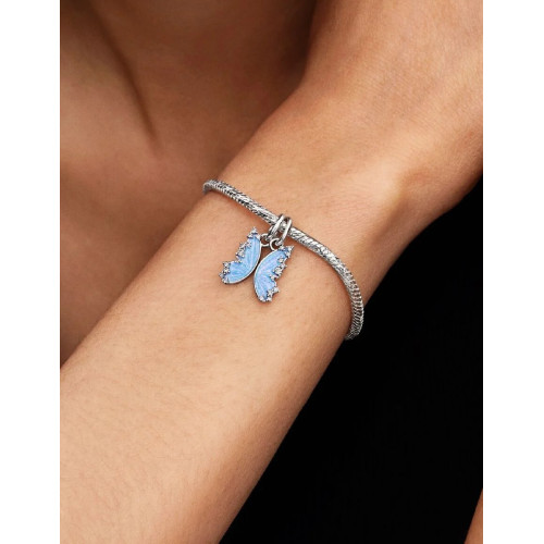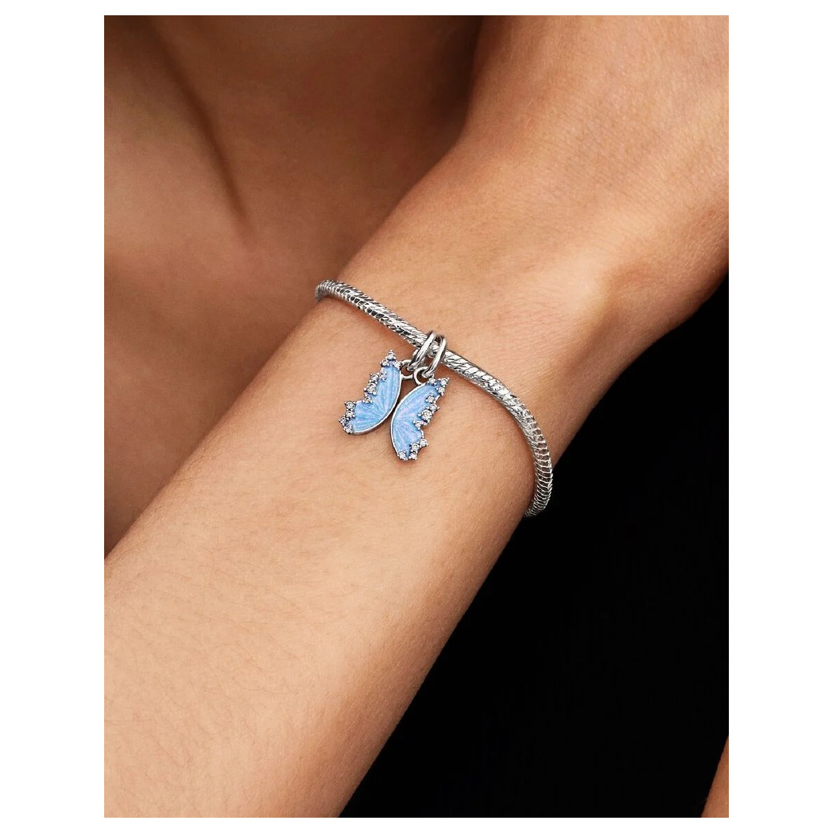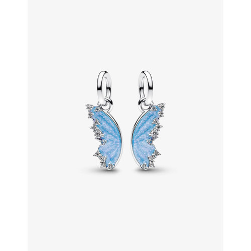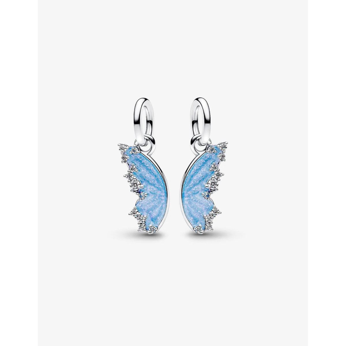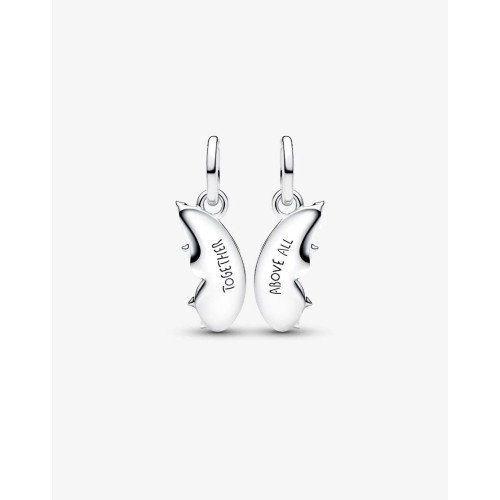 Creadas para compartir, diseñadas para brillar. Este charm de una mariposa divisible en plata de primera ley se presenta con radiantes circonitas cúbicas y brillante esmalte de color azul en el frente y la inscripción "TOGETHER ABOVE ALL" (Juntos por encima de todo) en el reverso de cada una.