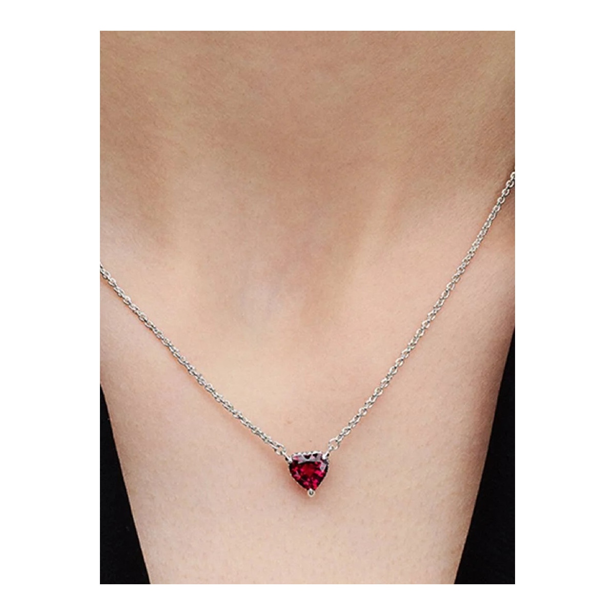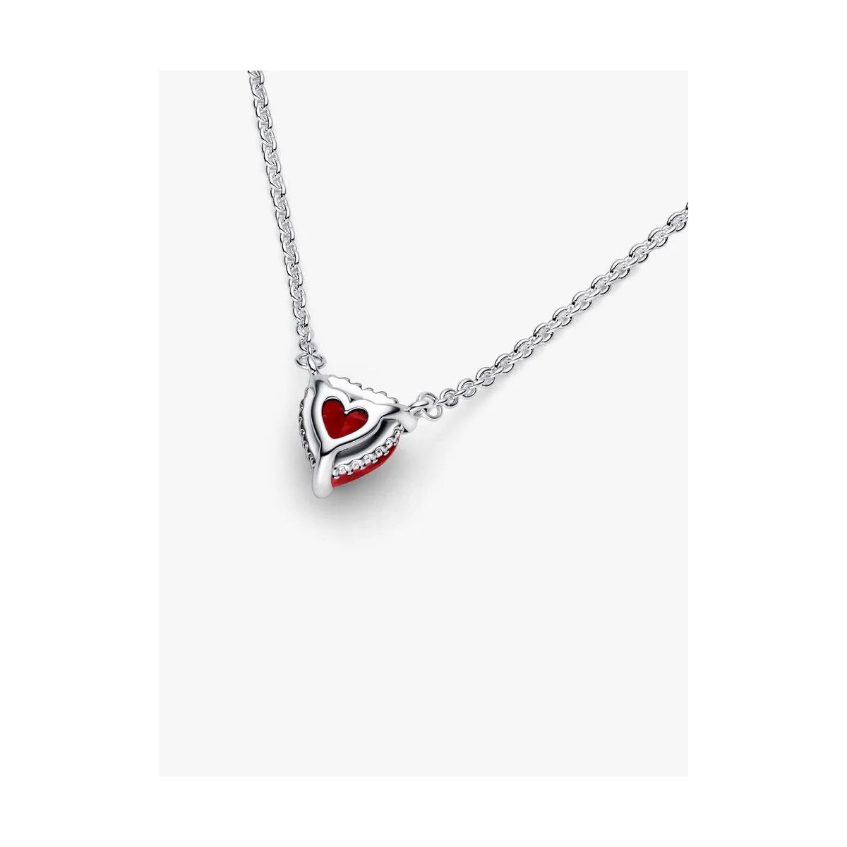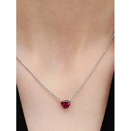 Regalos desde el corazón. Este collar con un colgante de cristal sintético de color rojo con forma de corazón en una cesta adornada con pavé irradia amor desde todos los ángulos. El colgante, que se ha fijado a la cadena