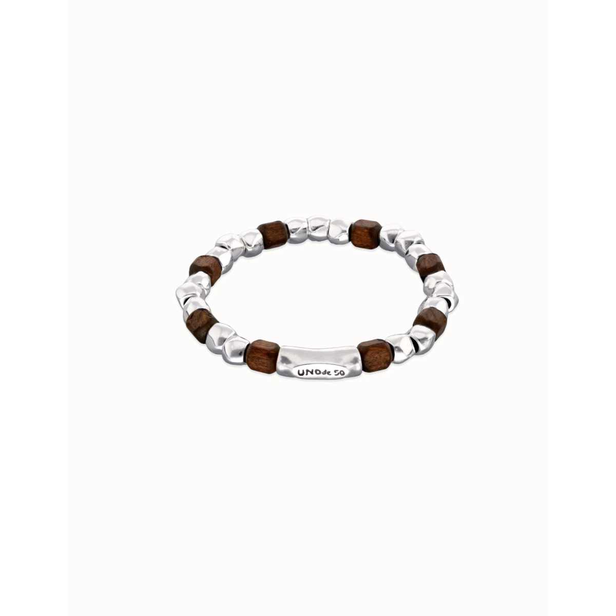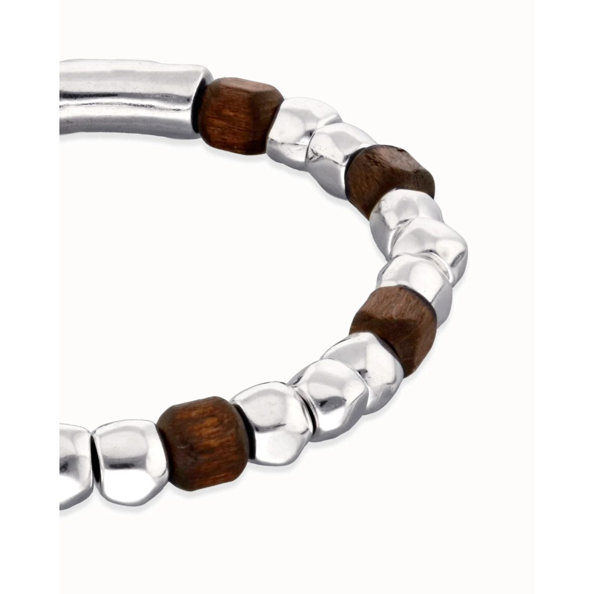 Pulsera elástica de cuentas en plata y madera